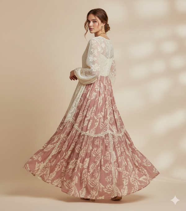 Pięknie kobiece i subtelne. Połączenie wzorzystej wiskozy i koronki nadaje sukience lekkość i wyszukaną delikatność. Idealne na letnie dni, randki i wyjątkowe okazje.