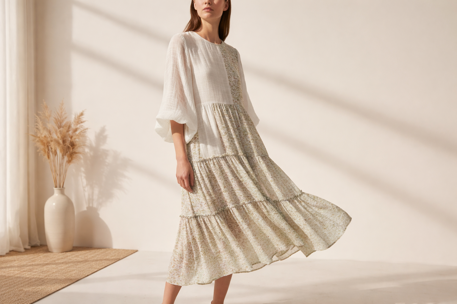 Codzienne i letnie sukienki – postaw na oddychający muślin lub wiskozę.