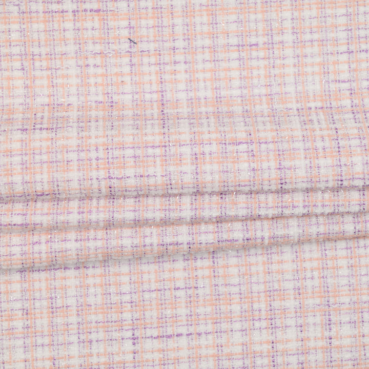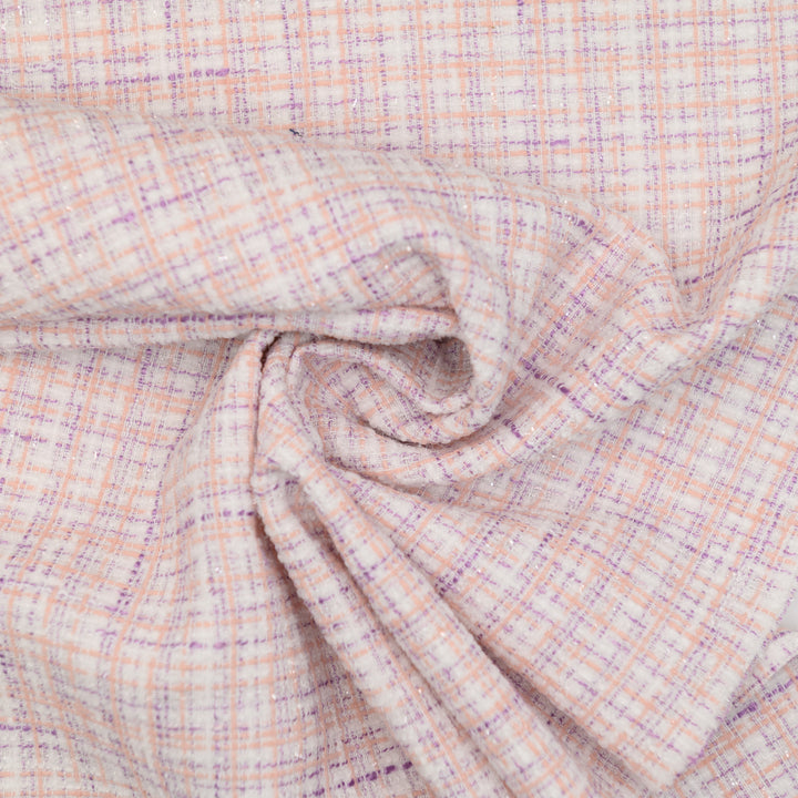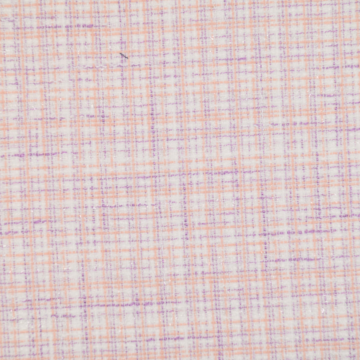 Chanelka Luzio "Brzoskwiniowy Puder" to subtelna, a zarazem wyrazista tkanina w pastelowych odcieniach brzoskwini, lawendy i bieli, przełamana lekkim połyskiem. Delikatna kratka dodaje jej lekkości i nowoczesnego charakteru. Idealna do projektów, które mają emanować kobiecością, świeżością i elegancją.