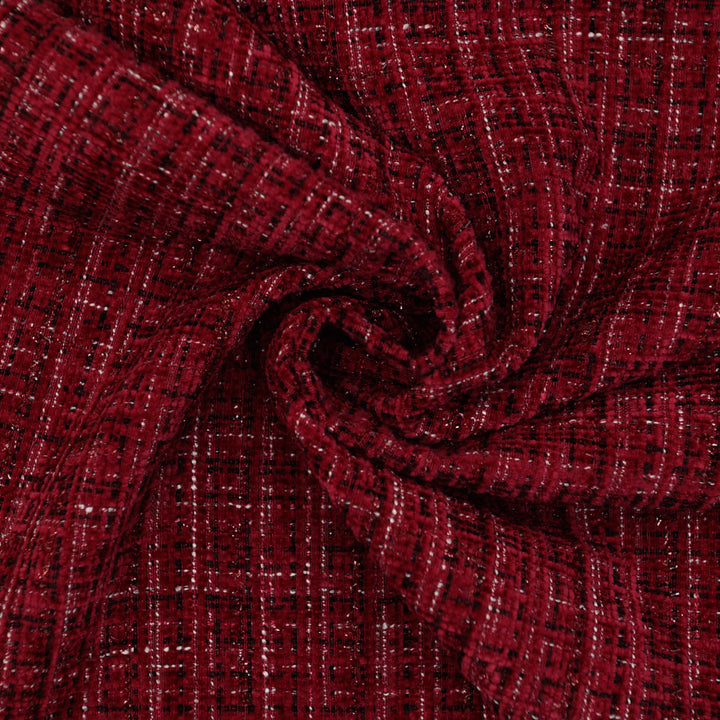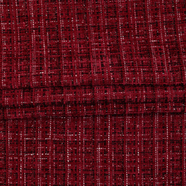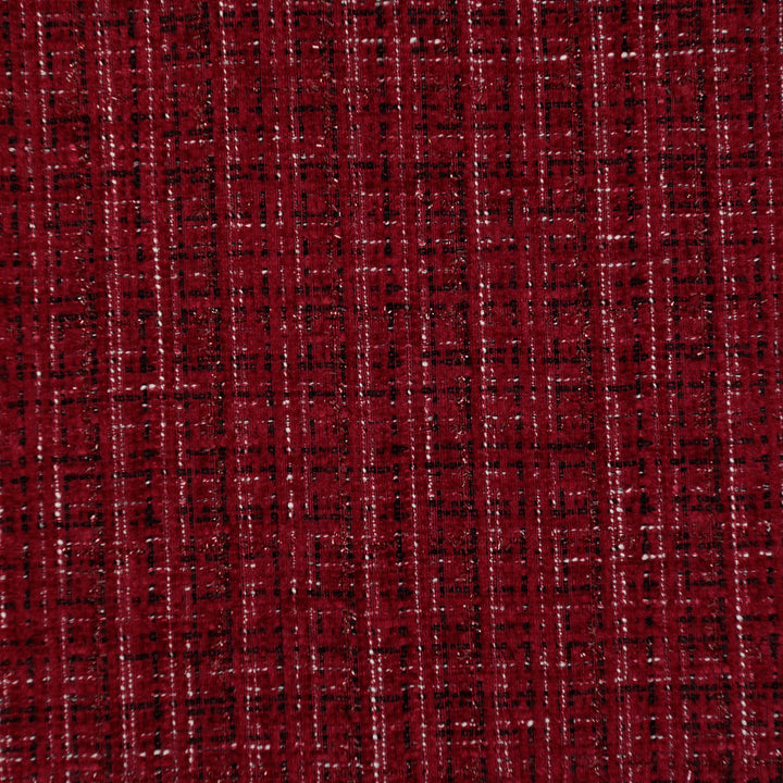 Chanelka Luzio "Rubinowa Elegancja" to stylowa tkanina w intensywnie czerwonym odcieniu rubinu, ozdobiona subtelnym geometrycznym wzorem z ciemnymi akcentami. Ta klasyczna, a zarazem wyrazista struktura materiału sprawia, że każda stylizacja nabiera szyku i klasy.